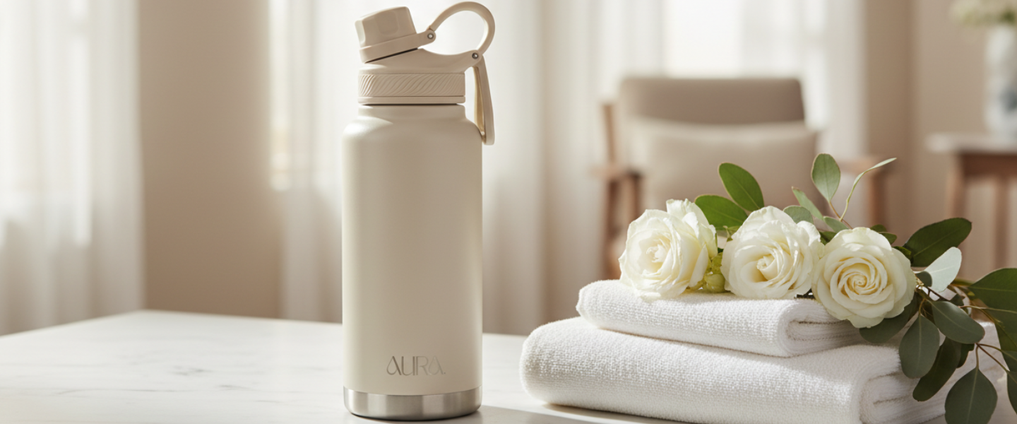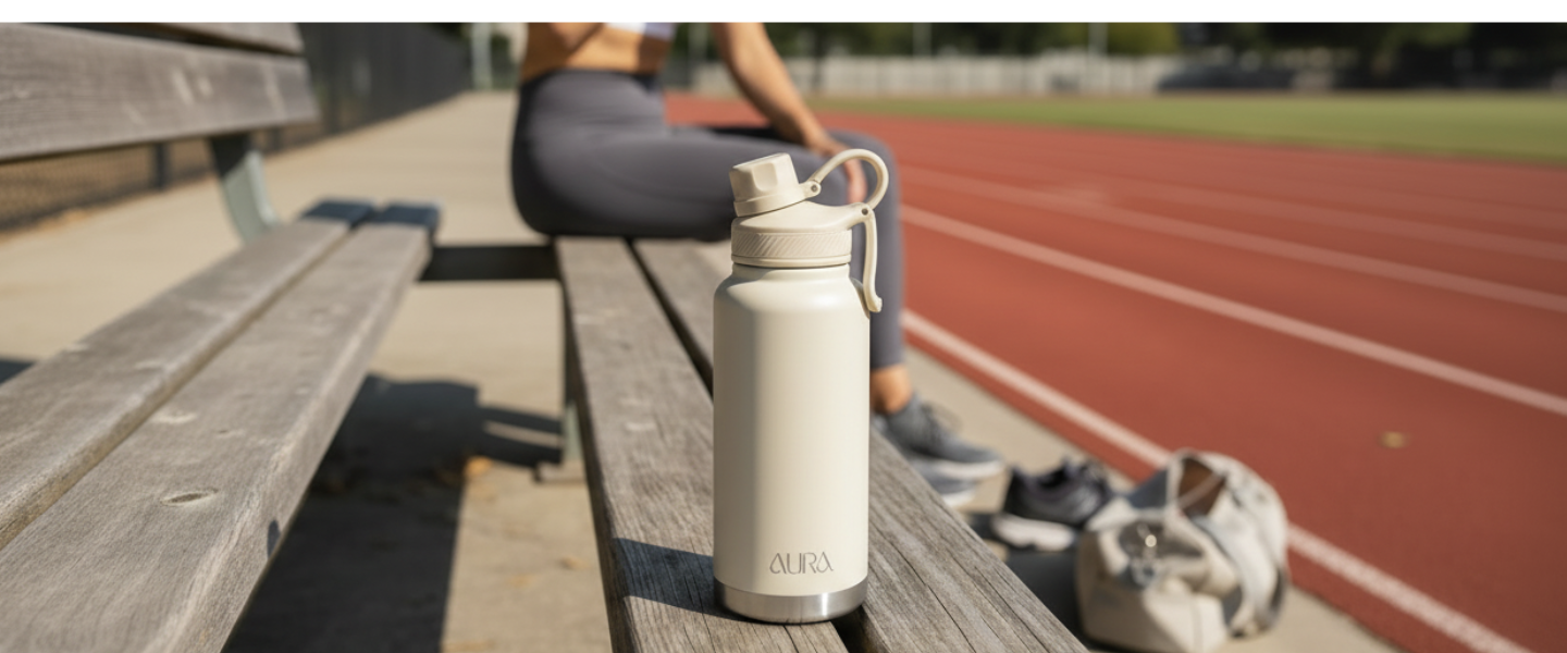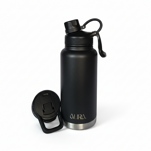 From the gym to the boardroom — AURA comes with two interchangeable lids so you never have to compromise. Flip lid for active hydration on the move. Straw lid for effortless sipping at your desk. One bottle. Your way.